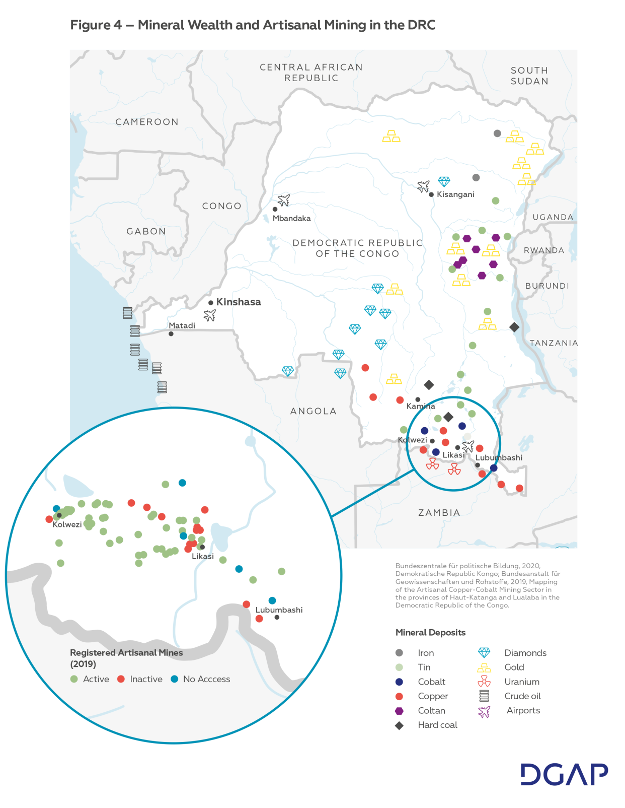 Concentrations of mineral deposits in the DRC. Credit: German Council on Foreign Relations, “Climate and Environmental Security in the Democratic Republic of the Congo,” April 3, 2023.